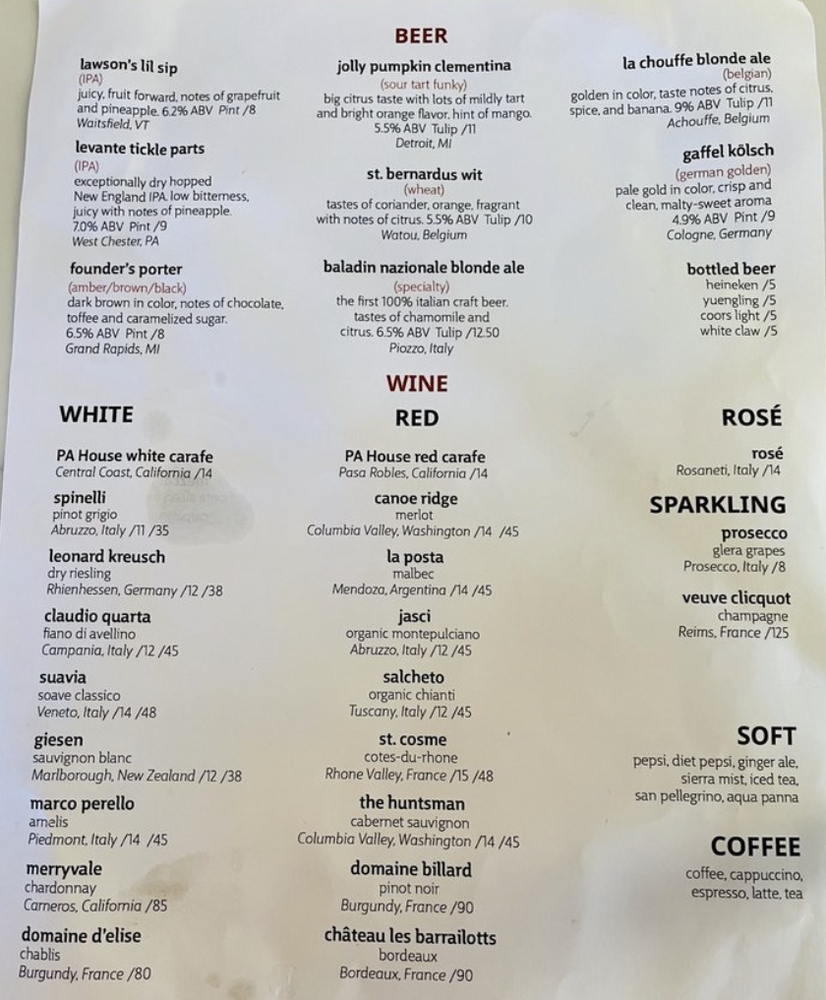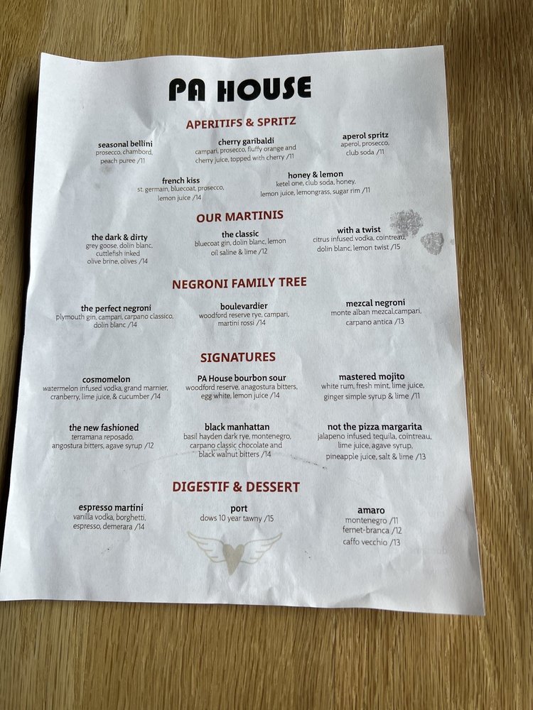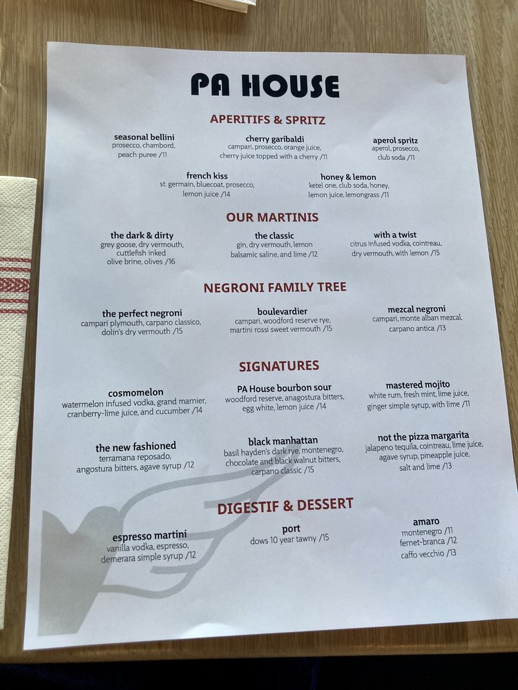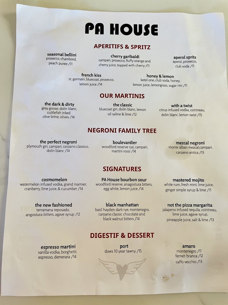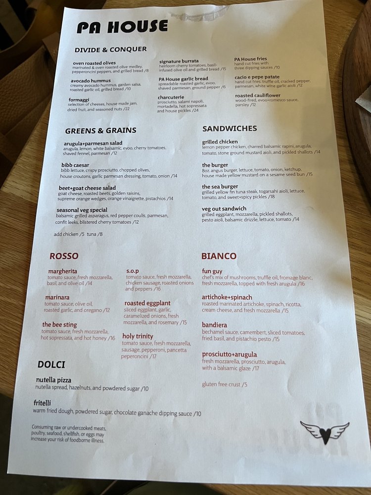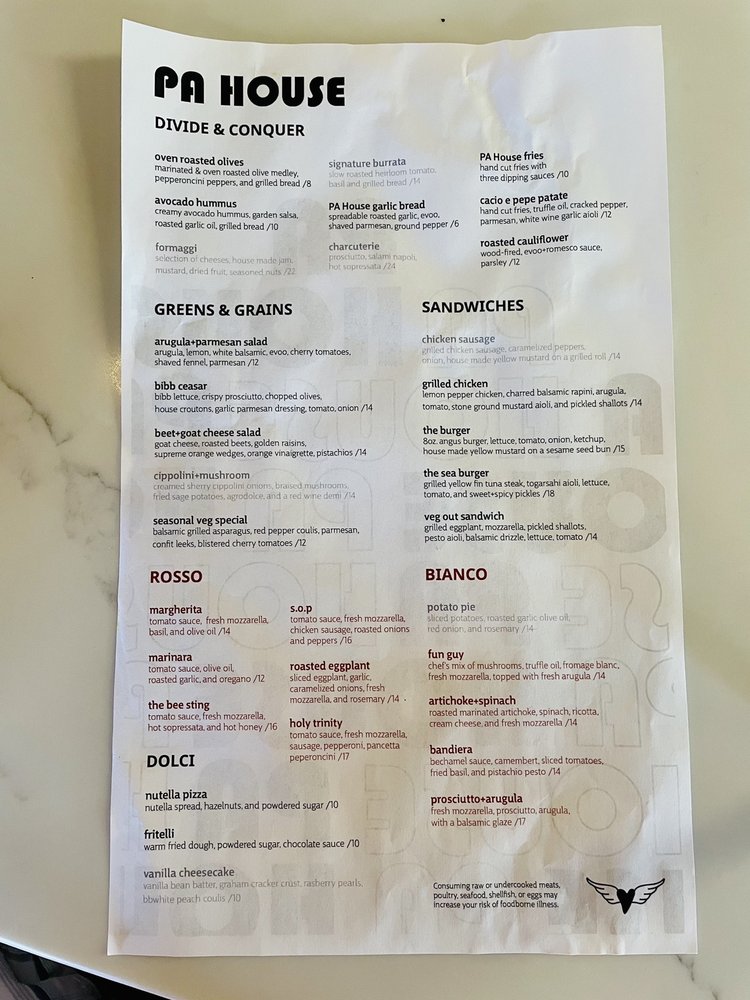 PA House Menu